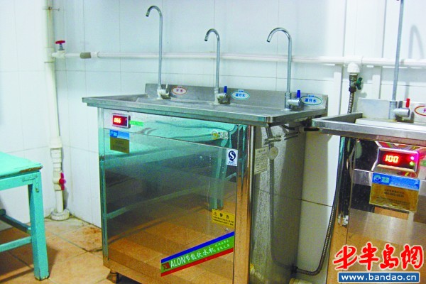 12日下午,記者來到撫順路23號的市北區(qū)第二機關(guān)幼兒園。在工作人員的帶領(lǐng)下,記者看到了幼兒園內(nèi)的兩臺直飲水機。這是兩臺艾能節(jié)能飲水機,它以自來水為原水,進水口和一旁的自來水管相連接,水通過過濾、加熱,然后就能飲用了。據(jù)介紹,每周一和周五,幼兒園都會定期用清潔劑和熱水對飲水機消毒,兩臺機器看上去都很干凈。